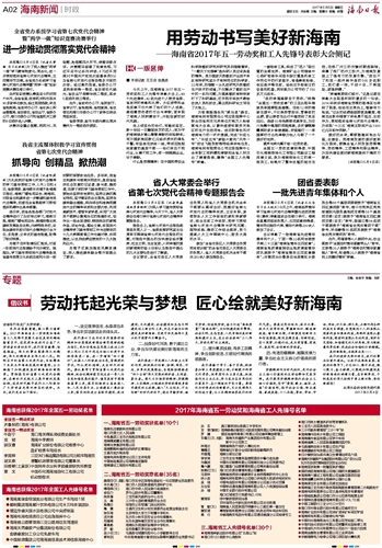 海南省获得2017年全国五一劳动奖名单