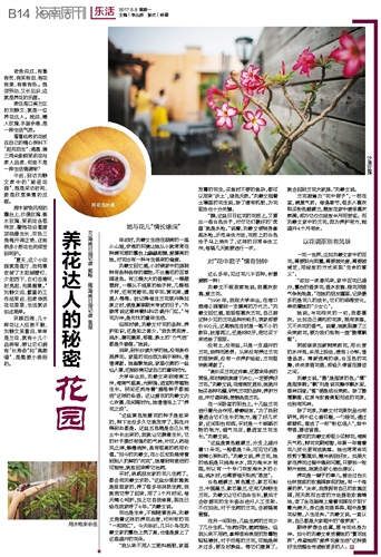 文\海南日报记者 郭畅 图\海南日报记者 袁琛老舍说过,有喜有忧,有笑有泪,有花有果,有香有色。既须劳动,又长见识,这就是养花的乐趣。