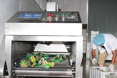 工人正对广和粽子进行包装烘干。 平宗 摄