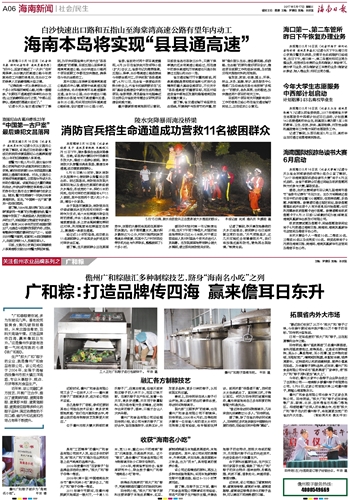 儋州广和食品有限公司也参与了这家会员制公司。田传明说,“那大广和”粽子近年来畅销广东、湖南、北京、吉林等省市和澳门等地区。相信随着广泛深入的纵横合作,包括“那大广和”粽子在内的儋州粽子,将拓展更加宽广的省内外大市场。(策划/周月光 撰文/平宗)