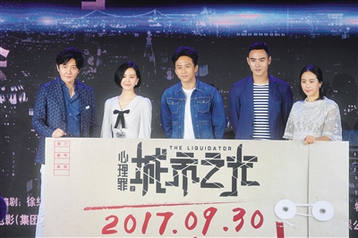 《心理罪之城市之光》主演郭京飞、刘诗诗、邓超、阮经天、林嘉欣(左起)亮相定档发布会 新华社记者 金良快 摄