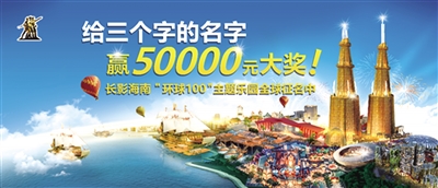 “给三个字的名字,赢五万元大奖”。6月9日上午,笔者从长影海南文化产业集团了解到,长影海南“环球100”主题乐园全球征名活动正式拉开帷幕,活动主办方长影海南文化产业集团5万元现金奖+终身VIP寻找首席命名官。据介绍,长影海南“环球100”主题乐园位于海口南海大道边,投入380亿元,倾力打造一座“中国独有、世界唯一”的超大型影视娱乐“王国”,更将成为我国文化产业发展的一个新的“里程碑”,助推海南国际旅游岛建设,实现“日月同辉满天星”的全域旅游格局。投资方长春电影制片厂,创立于1945年10月1日,曾创造新中国电影事业的七个第一,被誉为“新中国电影的摇篮”,为我国电影事业的创立和发展做出了突出贡献。2010年12月,项目通过海南省国际旅游岛领导小组的审批,作为海南国际旅游岛建设的三大主题公园之一落户海南;2012年12月,与海口市签订合作协议;2013年12月,长影成功摘牌;2014年10月项目控制性详规获海口市批准,同年,长影海南“环球100”暨生态修复项目现场推进会在海口市举行,标志着海南省重点工程项目,海南投资大、规模大的文化产业项目、旅游产业项目和生态修复项目,以及推动我国文化产业繁荣发展的标志性工程之一——长影海南“环球100”项目正式启动;2015年3月,海南省政府召开重点项目推进表彰大会,长影海南“环球100”项目是唯一一个获得海南省政府重点项目推进奖的非国家投资项目。