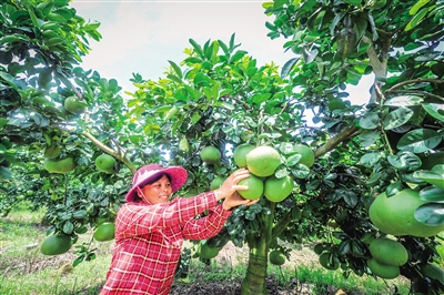 海南农产品因品质优良深受市场欢迎。图为海口市琼山区大坡镇福昌红肉蜜柚种植示范基地。