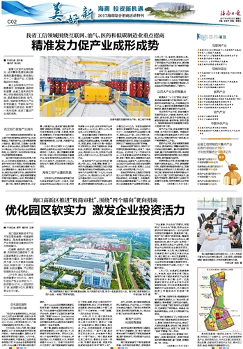 海口国家高新区不断创新招商思路、主动转变招商模式,按照美安“产业高端、产业生态”的要求,牢固树立“生态优先”思维,把符合生态要求和环保标准作为一切产业和项目落地的前置条件,提高招商门槛,制定“四个瞄向”招商思路,精准招商,瞄准世界500强企业和央企,瞄准前沿科技、新兴产业和“互联网+”项目,承接发达地区产业转移,引进符合产业导向和生态要求的项目,协同京津冀、长三角、珠三角等地区的高新区等产业园区开展交流合作,建立园区间一体化发展新模式,引进能够带来中下游产业链的龙头企业项目和培育重大税源的项目,不断延伸现有产业链,引进了一批重大项目。