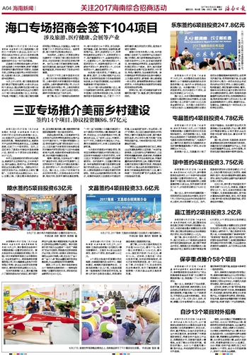 其中,保亭探戈坞旅游开发有限公司、海南华瑞和靖旅业文化开发有限公司保亭分公司将于本月29日在海口与保亭签订项目合作协议,开展两大旅游项目建设,签约总金额26.8亿元。