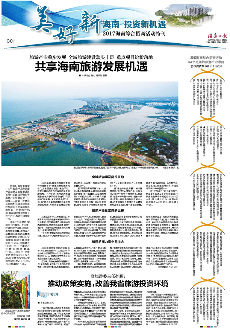 2017海南综合招商活动 44个拟签约旅游产业项目