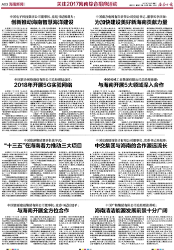 张善明说,长期以来,中广核集团与海南建立了密切的合作关系。在海南省委省政府的大力支持下,中广核集团积极服务于海南“生态立省”和打造“国际旅游岛+”发展战略,围绕新能源开发、海水淡化、区域环境综合治理等业务领域,在海南开展了一系列投资开发工作,并取得良好进展。