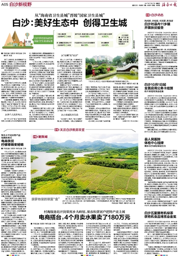 如今,白沙这个新晋的“国家卫生县城”,在美好生态的环绕下,继续“升级”着自己“容颜”。