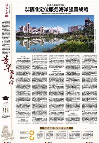 ■ 海报集团全媒体中心记者 容朝虹 本报记者 易建阳 通讯员 郭万洲 张帅中国的南海边,春暖花开,到处生机勃发。在那云飞浪卷的天之涯,诞生了中国最年轻的海洋类高等学府——海南热带海洋学院。