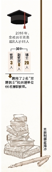 “我们根据开设专业、研究机构的需求,重点引进紧缺人才,打破传统用人观念,不惟身份、不惟文凭,不分地域,只看能力和水平,采取‘一人一策’、年薪制、合同制等柔性引才办法,在住房、科研经费、实验室建设等方面给予保障,让他们能充分发挥各自特长和潜能。”韦勇介绍。