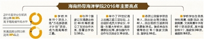 “在学位点建设上,学院取得重大突破。学院获得省学位委员会批准成为海南省硕士学位授予立项建设单位,海洋科学等12个学位点获批硕士学位授权点立项建设。”曹瑜告诉记者,学校还与中国海洋大学联合培养研究生,今年这一学期已经在海洋食品、海洋环境、海洋渔业3个专业方向招收了30名研究生,近日将举行开班仪式。