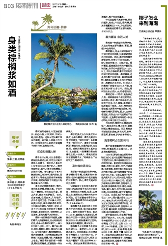 文\海南日报记者 单憬岗椰树遍布海南岛,村庄房前屋后、海边沙滩、山坡树林、田间小路,到处都是。这种与百姓朝夕相伴的植物,早已融入海南人的生活。可相当多的人依然不知道椰子树的习性、品种和分布。