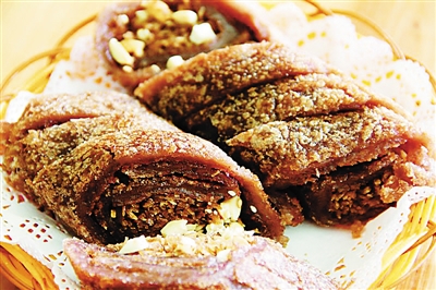 椰丝糯米卷,海南全省都有,但被称为“猪肠粑”的,只见于万宁。万宁市万城镇北门村是猪肠粑的唯一出产地。