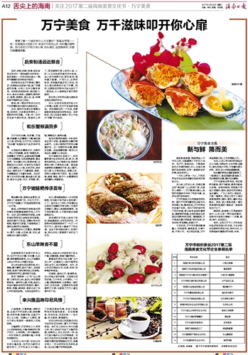 美食就像美景,既能带给人们乍见之欢,也能赢得人们的长久迷恋。在万宁,更是如此。不管是独具侨乡风情的咖啡、点心,还是大海里的各色海鲜,总有一款能抓住你的胃,抓住你的心。