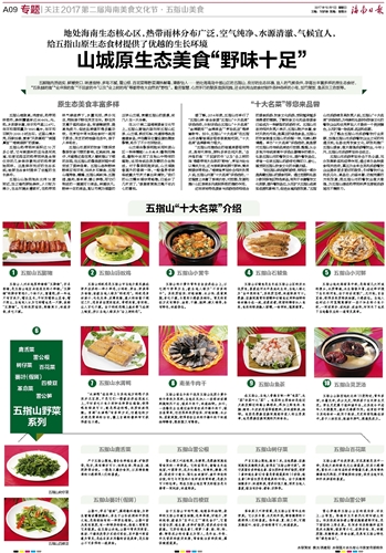 “到五指山来旅游的游客,有相当一部分是奔着五指山的美食而来。通过挖掘和弘扬少数民族地区特色菜品,有利于丰富餐饮文化资源,提升餐饮品位,从而扩大五指山名菜知名度和影响力,促进全域旅游发展。”五指山市旅游商务局负责人说,五指山“十大名菜”评选活动,为传承和弘扬民间饮食文化的餐饮企业和优秀烹饪人才提供一个竞技舞台,从而打造一批名菜、名店和名厨。