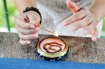 沉香粉点燃后,散发出沁人心脾的香气。 王家专 摄