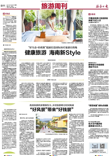 省旅游发展研究会会长王健生认为,海南健康旅游发展需要有地域特色的“品牌标签”,打造具有海南特色的拳头健康旅游产品,并可进行国际输出的“海南style”以增强产业竞争力。“养生、养老、保健等健康旅游方面的人才培养也至关重要,应纳入议事日程。”王健生说。