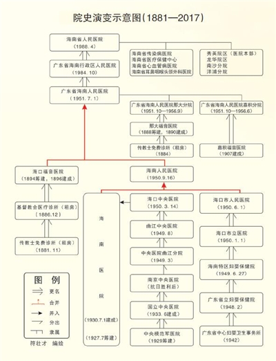 1951年7月1日,海南人民医院与海口福音医院合并成立广东省海南人民医院,1984年10月更名为广东省海南行政区人民医院。