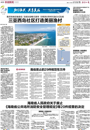 跟随三亚发展美丽乡村的脚步,西岛将以焕然一新的风貌呈现在世人面前。(本报三亚11月27日电)