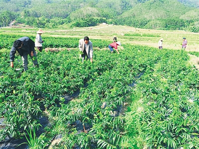 在五指山市,部分贫困户成立合作社,种植树仔菜抱团发展。五指山南圣奔内树仔菜种植经济专业合作社有70多户贫困户,采取“党支部+合作社+贫困户”的模式,连片种植树仔菜85亩。“这些土地是从农民手中流转过来的,租金每年1500元,政府还投入资金,帮助贫困户整理土地,建设喷灌设施,并补贴种苗、有机肥、地膜等费用。”南圣镇干部吴挺学表示,树仔菜基地有专门的技术人员指导,科学浇灌、施肥和剪枝等,树仔菜采摘、除草需要不少人力,除了4位贫困户固定在基地干活,按月领取工资,其他贫困户有空闲也可以来劳动,每天有80元。