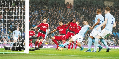 1月3日,在英超联赛第22轮比赛中,曼城队主场以3:1战胜沃特福德队。 新华社发