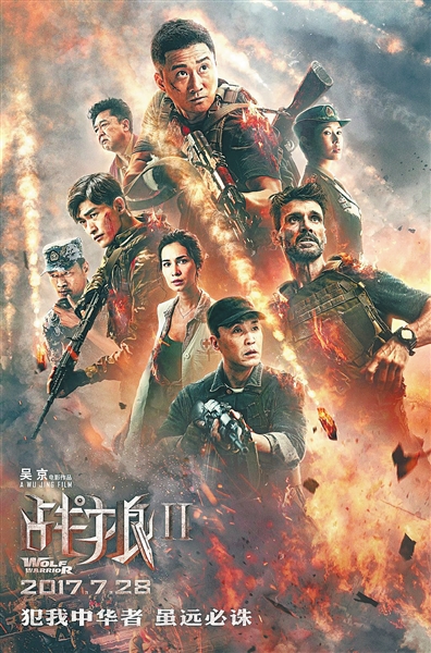 相对于以前的国产商业片而言,2017年高票房中的“中国制造”体现出质的飞跃。《西游·伏妖篇》展现了现代国产影视制作工艺迈向了一线水准;《功夫瑜伽》围绕中国功夫、印度瑜伽、寻宝探险等元素,打造了一场具备国际制作水准的“合家欢”;《乘风破浪》以轻喜剧风格融合了现代穿越元素,做了一次父子破冰之旅的尝试,引发了一场关于“小镇青年”审美趣味的大探讨;最引人注目的是《战狼2》,接地气,有豪情,展示了中国人走向国际舞台的民族自信。这些商业类型片在娴熟的类型叙事之外,一扫国产片身上肤浅、空洞、低俗的老毛病,做到了老少咸宜,已经是十分成熟的商业作品。