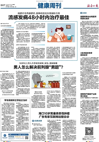 ■ 本报记者 徐晗溪海口市民刘老伯今年79岁了,身体一向健康,但最近晚上要小便3~5次,有时多达7~8次,每次尿量都不多,排尿时非常费力,老人苦不堪言,去海口市人民医院检查才得知,他患了前列腺增生。