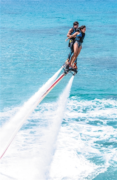 今年春节假日期间,游客在陵水分界洲岛景区体验“水上飞龙”项目。 本报记者 武威 通讯员 童国强 摄