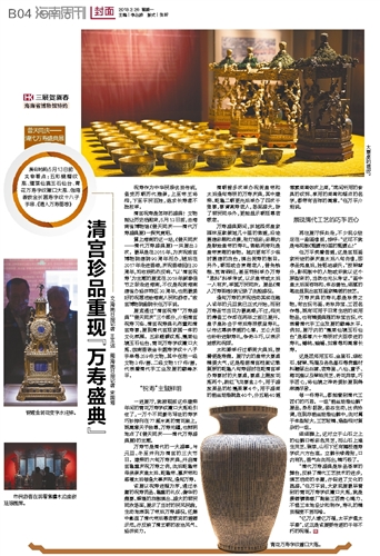 算上海南的这一站,《普天同庆——清代万寿盛典展》一共展出3次。最早是在2015年,为庆祝故宫博物院建院90周年而办,随后在2017年走进香港,庆祝香港回归20周年,均收获热烈反响。“以‘清宫祝寿’为主题的展览在2018年新春佳节之际走进海南,不仅是祝贺海南建省办经济特区30周年,也把最美好的祝愿送给海南人民和游客。”故宫博物院副院长任万平说。