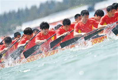 2015年中华龙舟大赛首站万宁站比赛。 本报记者 王凯 摄