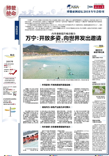 在国家实施“一带一路”建设的大背景下,万宁将依托博鳌亚洲论坛、中非合作圆桌会议机制、侨乡资源等,以更加开放的姿态,构建开放型经济新体制,打造海南东部沿海对外开放窗口。