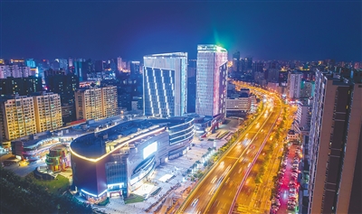 近年来,海南农垦不断优化产业结构,进军旅游、商贸物流、农产品深加工、金融等领域,实施“八八战略”。图为灯火辉煌的省重点项目海垦广场,已成为海口海秀—金牛湖片区新地标。 本报记者 李幸璜 摄