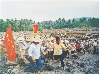 上世纪九十年代,海南农垦南田农场职工在好汉坡劳动的场景。