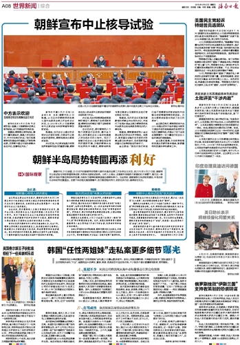 特朗普在当天的社交媒体发文中还表示,朝方这一决定是“巨大进展”,他对美朝首脑峰会表示“期待”。