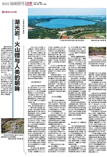 “湛江当地流传着这样一句话‘海口的火山是公的,湛江的火山是母的’。”湛江市旅游局市场拓展科科长林洪强介绍说,这句话中“海口的火山”是指马鞍岭火山,而湛江的火山自然是指湖光岩。