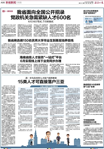 三亚目前正在研究出台符合本市实际的人才引进落地政策及实施细则,提升人才工作科学化水平,实现制度化、规范化管理。此外,三亚还将进一步简化办理流程,为人才落户设立快速通道,并为“上班族”办理户口提供预约延时服务等;同时试行权限下放措施,对大学生人才落户以分局审批为主,尽量减少审批环节、缩减办理时限等,对有合法产权(含租赁)的单位,进一步放宽集体户设立条件,吸引更多各类优秀人才落户三亚,为海南自贸区(港)建设提供人才支撑。