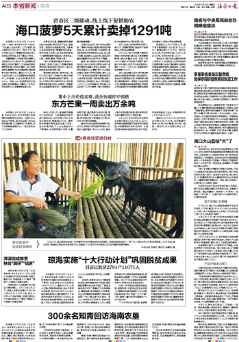 记者从省农业厅、海口市农业局获悉,了解到今年海口菠萝价格低迷的情况后,省、市、区相关部门三级联动,通过积极联系收购商和加工企业、线上线下促销、组织爱心企业认购、进社区和超市促销等方式为农户打开了销路。