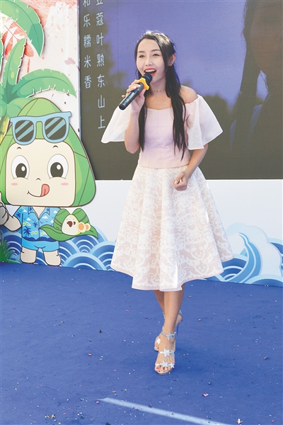 在今天上午的“2018海南端午全民粽动员”活动现场,一名身着靓丽服饰的女孩演唱一首《和乐粽》,将开幕式现场气氛推向高潮。这名女孩就是“粽子西施”赵应琼,大学毕业后就回家帮家人卖粽子,将自家的五月香粽子发展成万宁成规模的粽子企业。
