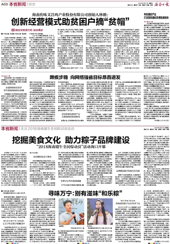 尽管温氏和乐粽子在海南已是名满全岛,但温国辉并不满足于此。今年年初,他们公司推出新的品牌“粽子兄弟”, 希望能以新品牌打开岛外更广阔的市场。