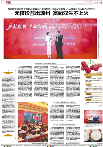 海南陆侨集团经过23年的发展,已初步形成特色农业、健康产业等五大产业布局。其中,特色农业和健康产业是陆侨集团当前重点发展的两大产业版块,特色农业以无核荔枝为主要代表,健康产业以西沙诺丽为代表,在全省发挥着重要的引领作用。