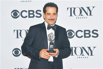 最佳音乐剧男主角获奖者托尼·沙尔胡布与奖杯合影。 新华社/法新