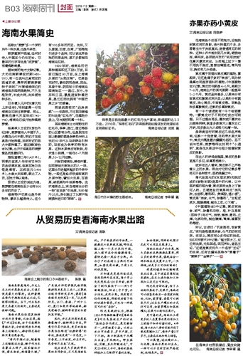 文\海南日报记者 陈耿海南岛孤悬海外,历史上本土的水果要走出去,交通不便是最大的掣肘。这种窘境在清代中期海运发达以后,已经得到解决。当下,对本岛水果交易最大的制约,主要还是保鲜问题。