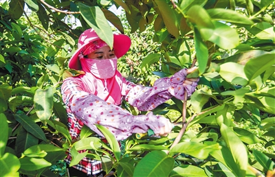 三亚南鹿农庄工人正在给有机莲雾树剪枝。 本报记者 武威 摄