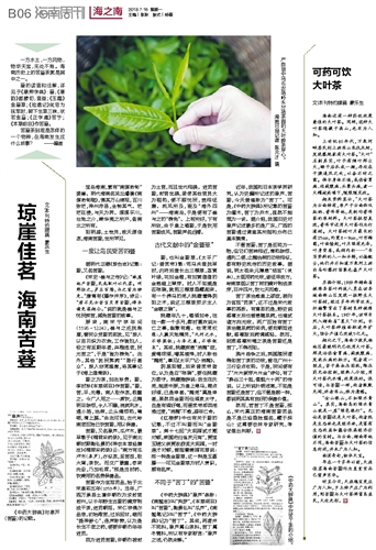 海南还有一种药饮效果兼佳的大叶茶。同样,这种大叶茶隐藏于高山,也罕为人知。