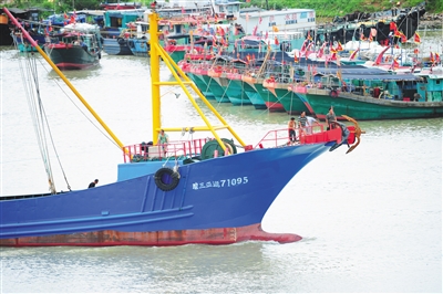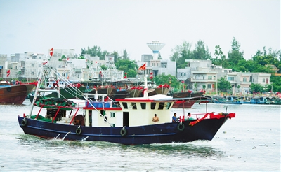 8月16日,渔船缓缓驾出三亚崖州中心渔港,即将开始新一轮的捕捞。 海报集团全媒体中心记者 沙晓峰 摄