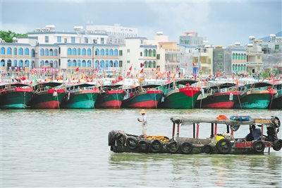休渔结束,临高新盈港渔民起锚出港。 海南日报记者 苏晓杰 摄