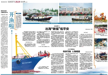 海风习习,海岸边潮水涌动。活动结束后,趁着开渔仪式的东风,一艘艘渔船拔锚起航,向浩淼大海驶去。