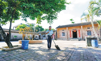 9月4日,陵水黎族自治县光坡镇老欧坡村村民陈昌连在打扫庭院,让环境更整洁。本报记者 武威 通讯员 胡阳 摄