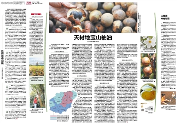 那么,海南油茶为什么叫“山柚”?周亚东研究发现,古籍中对油茶的称呼至少有19种,“木贾”“员木”“探子”“楂木”“茶梨”等等,但“山柚”的叫法只有在海南,琼南地区还有叫“山油”或“木油”的。他推测,很可能是基于这种植物的适生环境、常绿以及果实的特点,这种植物适生于丘陵山地,果实又状如柚子,因此老百姓便称为“山柚”,意即一种长在山上,植株及果实像柚子的植物。
