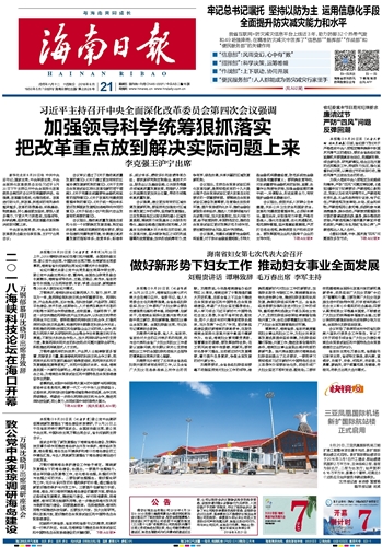 谭琳表示,海南省委、省政府高度重视妇女事业和妇女工作,为妇女共享改革发展成果提供坚实保障,为妇联组织履行职能、开展工作、推进改革创造有利条件,海南妇女事业呈现出阔步向前的崭新气象。她代表全国妇联对海南各级妇联组织提出了五点要求,一要把学习贯彻落实习近平新时代中国特色社会主义思想作为首要政治任务,团结引领广大妇女坚定不移听党话、跟党走;二要牢牢把握海南全面深化改革开放的新机遇新使命,动员组织广大妇女贡献“半边天”智慧和力量;三要发挥广大妇女在家庭生活中的独特作用,打牢培育和践行社会主义核心价值观的社会基础;四要认真贯彻男女平等基本国策,不断增进广大妇女的获得感幸福感安全感;五要以保持和增强政治性先进性群众性为主线,全面深化妇联组织改革。